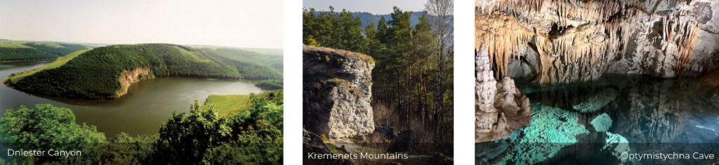 This land has many surprises in store: the world’s longest karst cave, the Optimistic Cave, the Kremenets Mountains, and one of the ‘Seven Wonders of Nature of Ukraine’ – the Dniester Canyon. With 34 castles, the Ternopil Oblast ranks first in Ukraine in terms of the number of castles. The region is also known for its historic sanctuaries and pilgrimage sites in Pochaiv and Zarvanytsia. There are many interesting places for lovers of ancient history, for example, the Verteba Cave – Museum of Trypillian Culture, or, in nearby Husiatyn, the famous statue of Zbruch Idol, which is an important monument of Slavic culture.