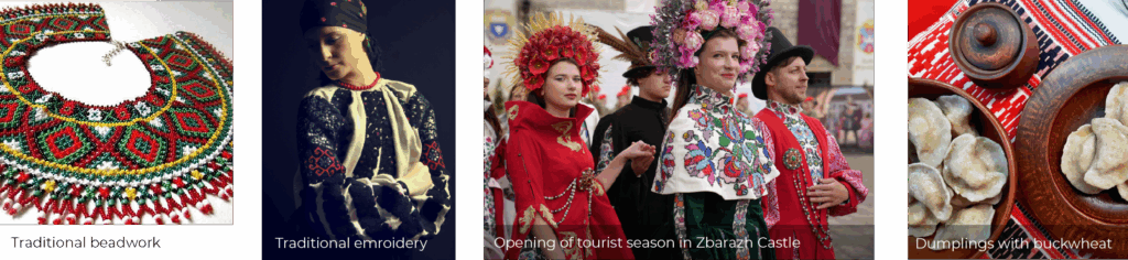 The most recognisable element of the region’s intangible culture is Borshchiv embroidery, which has preserved a complex system of symbols and techniques since ancient times. Other crafts for which the Ternopil region is famous include pottery, blacksmithing, beadwork, Easter egg decoration, weaving from plant materials, and weaving. Anyone who visits this hospitable region will be pleasantly surprised by its rich and varied cuisine. Kremenets dumplings with buckwheat have been included in the list of Ukraine’s intangible heritage.